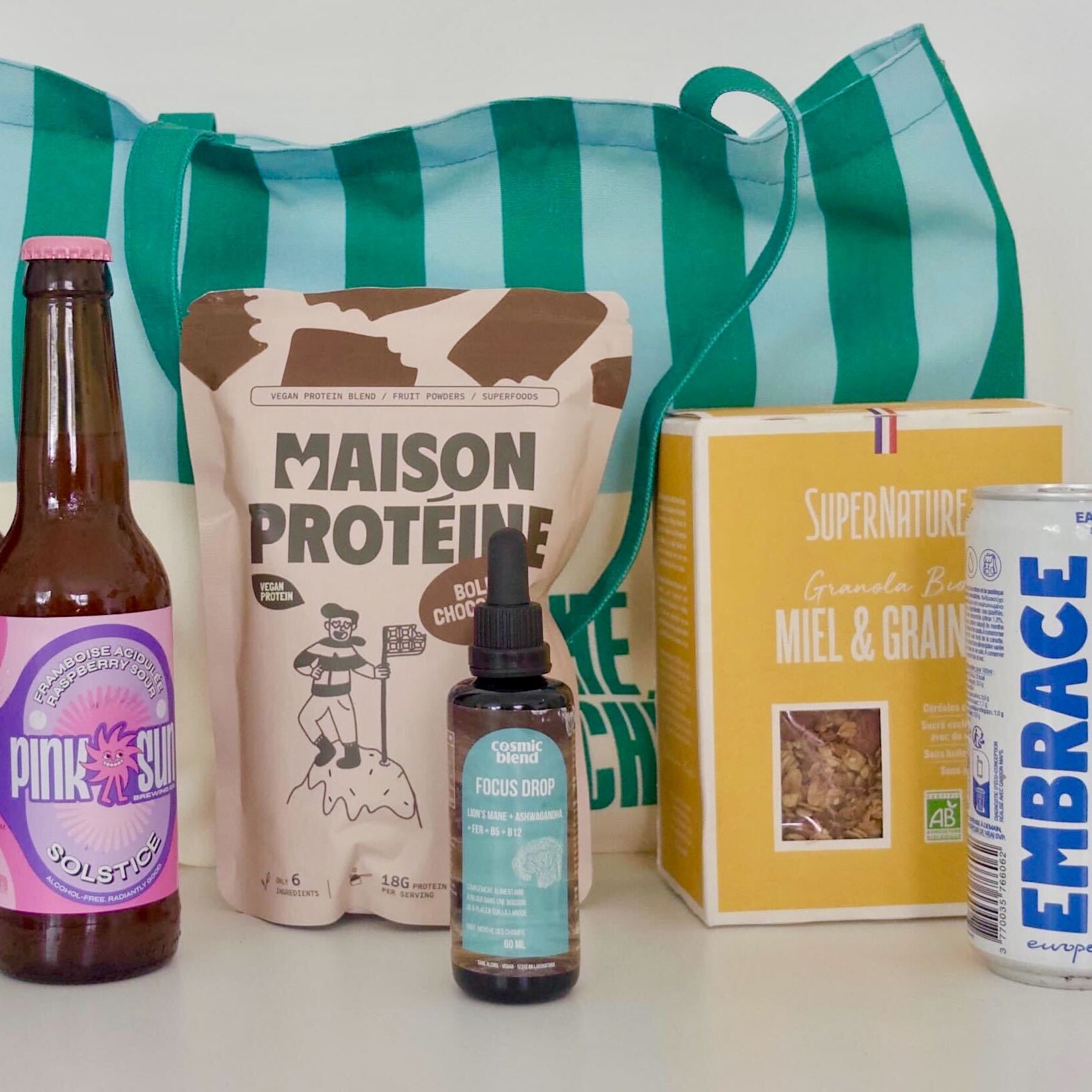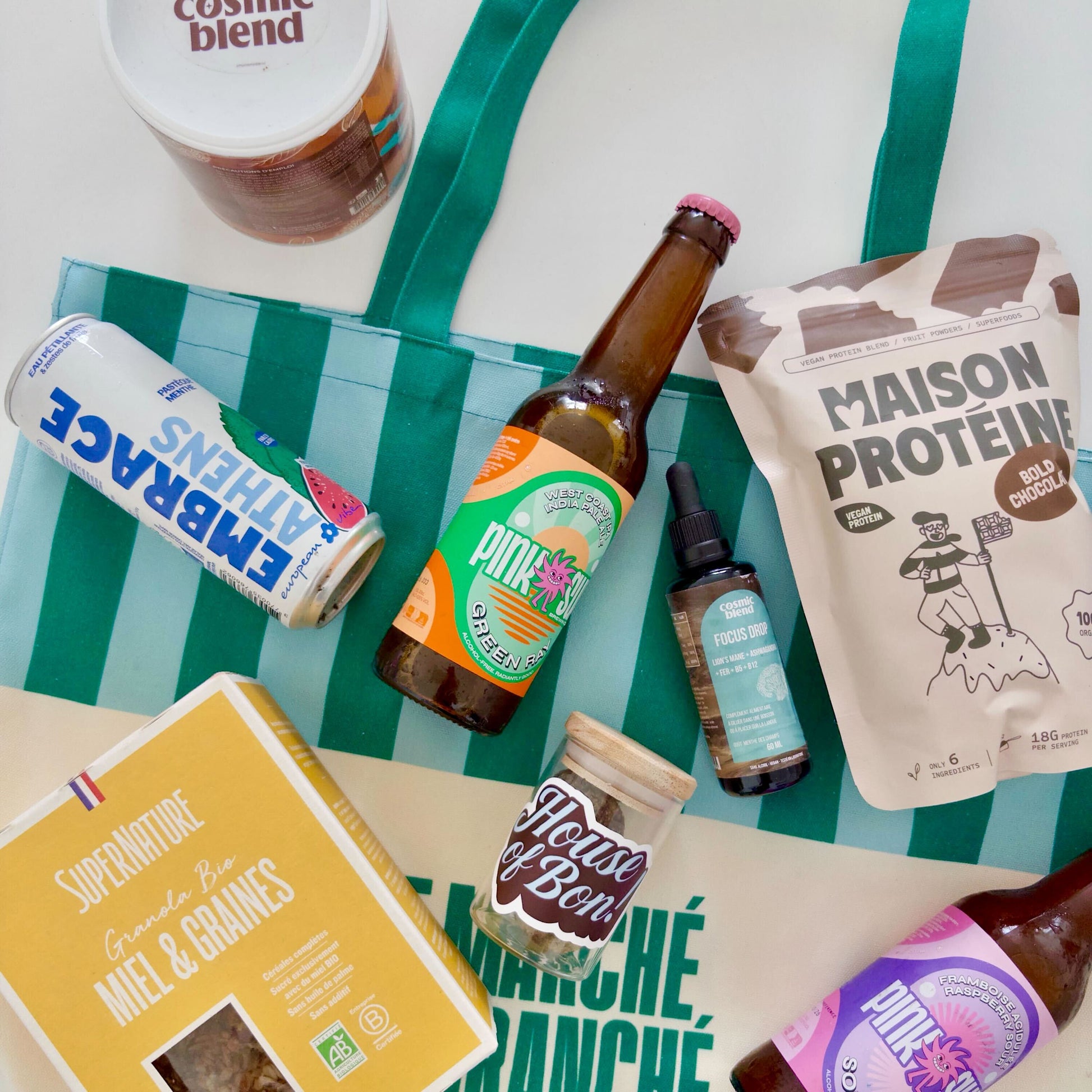 Le cabas est le tote bag fourre-tout, idéal pour faire vos courses au Marché Branché et bien plus encore ! Spacieux et pratique, il peut facilement tenir tous vos aliments et boissons better-for-you sans problème. Que vous fassiez vos courses, alliez à la plage ou partiez en voyage, le cabas vous accompagnera avec style.